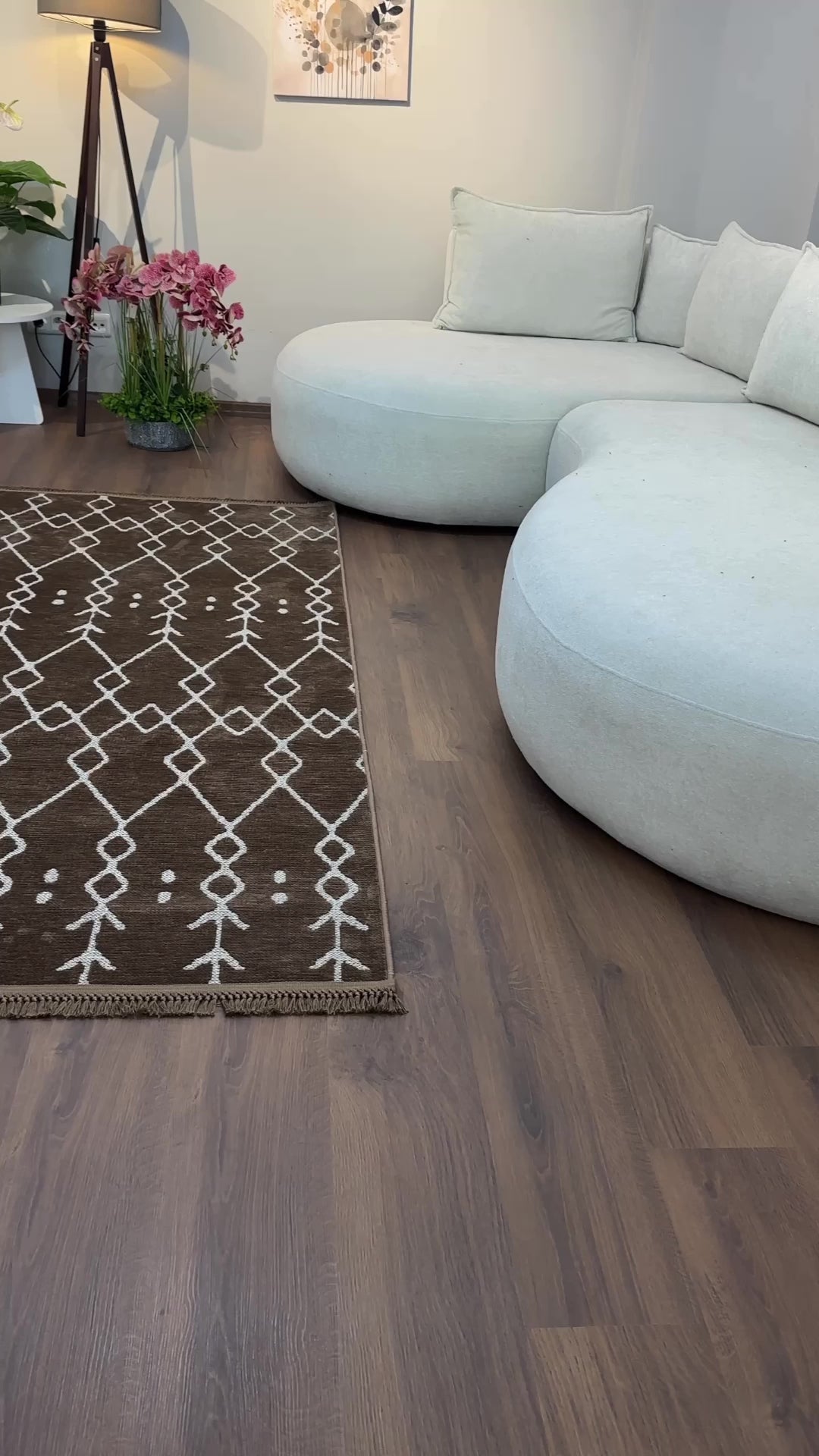 ŞÖNİL MODERN - KAHVE Makinede Yıkanabilir İskandinav Desenli Salon Koridor Mutfak Şönil Dokuma Halı